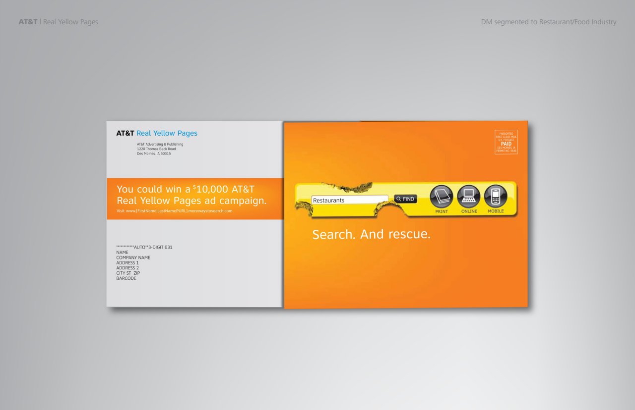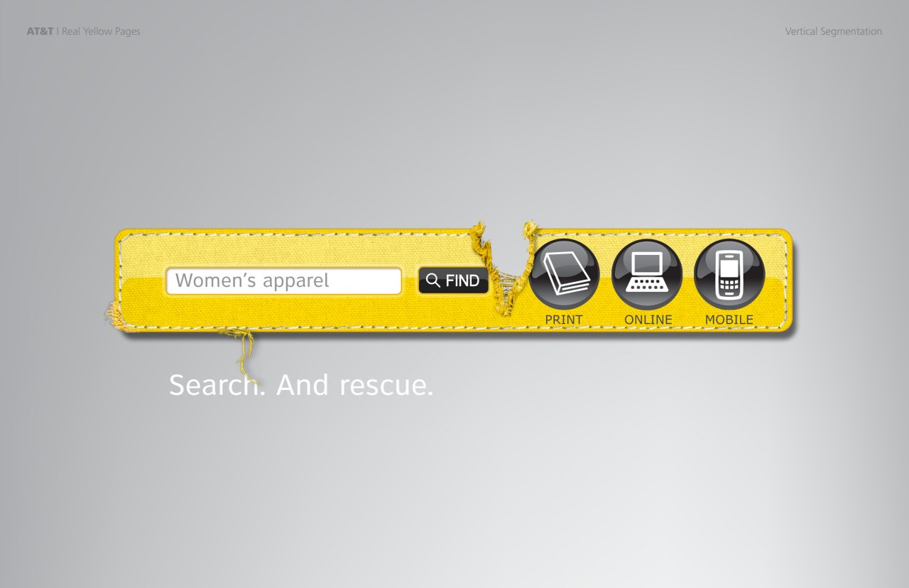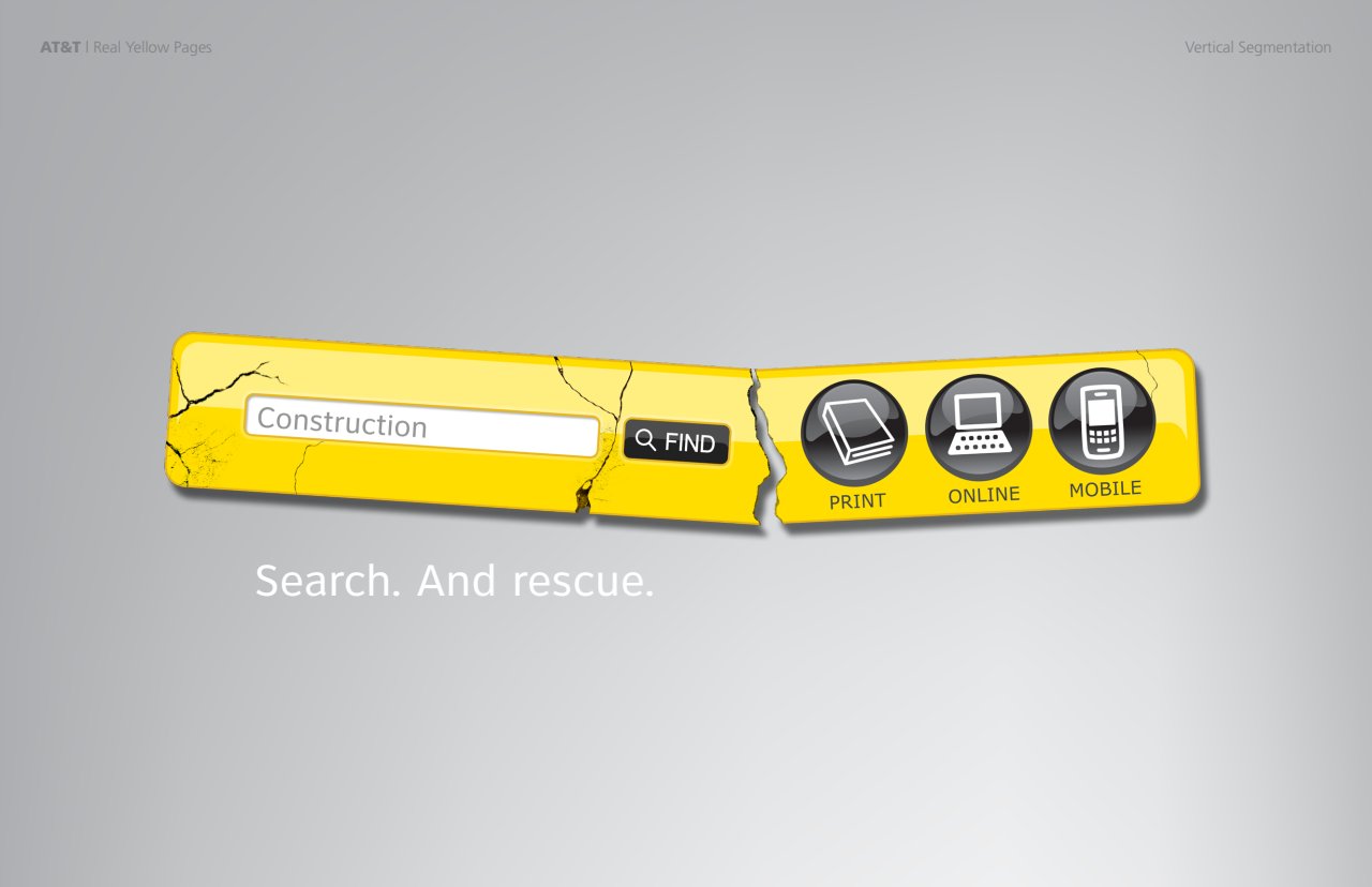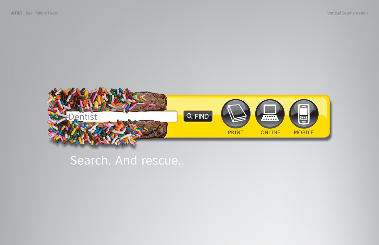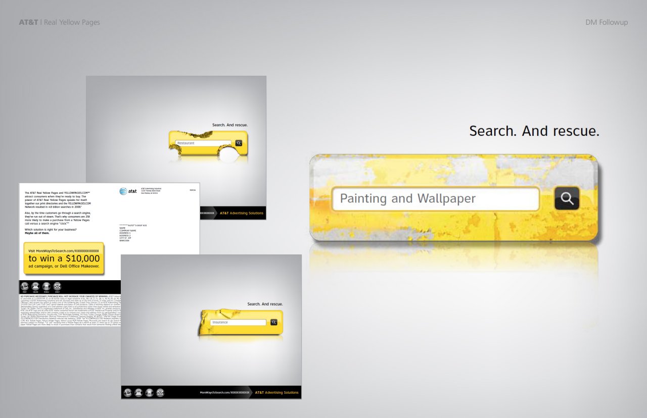 To drive awareness of AT&T’s Yellow Pages online search, I came up with a simple and effective visual solution.