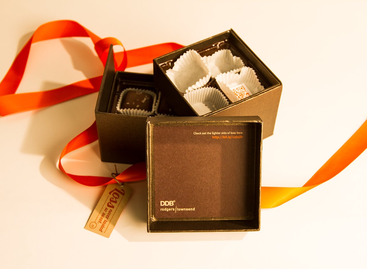 Next, I applied loss aversion to prospective clients at AT&T, sending empty chocolate boxes with a QR code to a video demonstrating our culture’s aversion to loss. The video was shot and edited in-house.