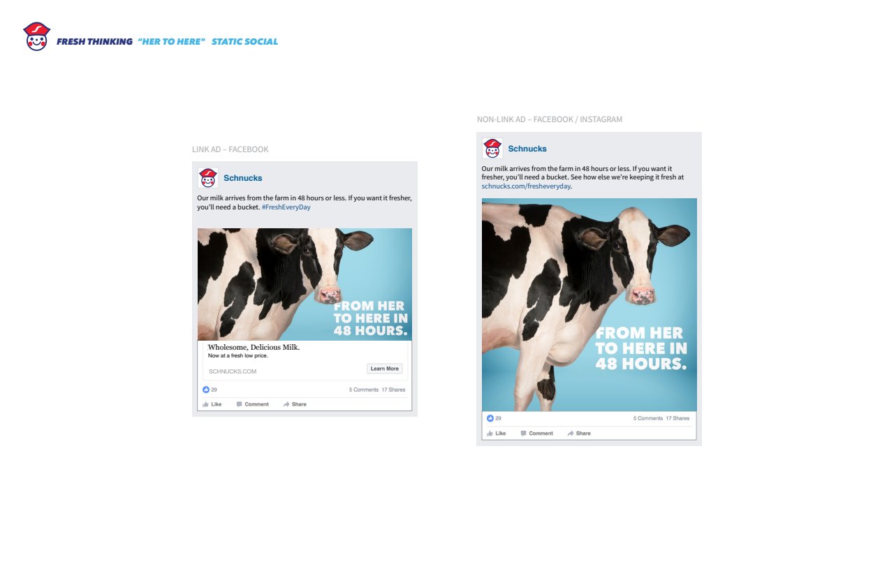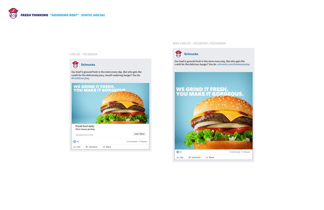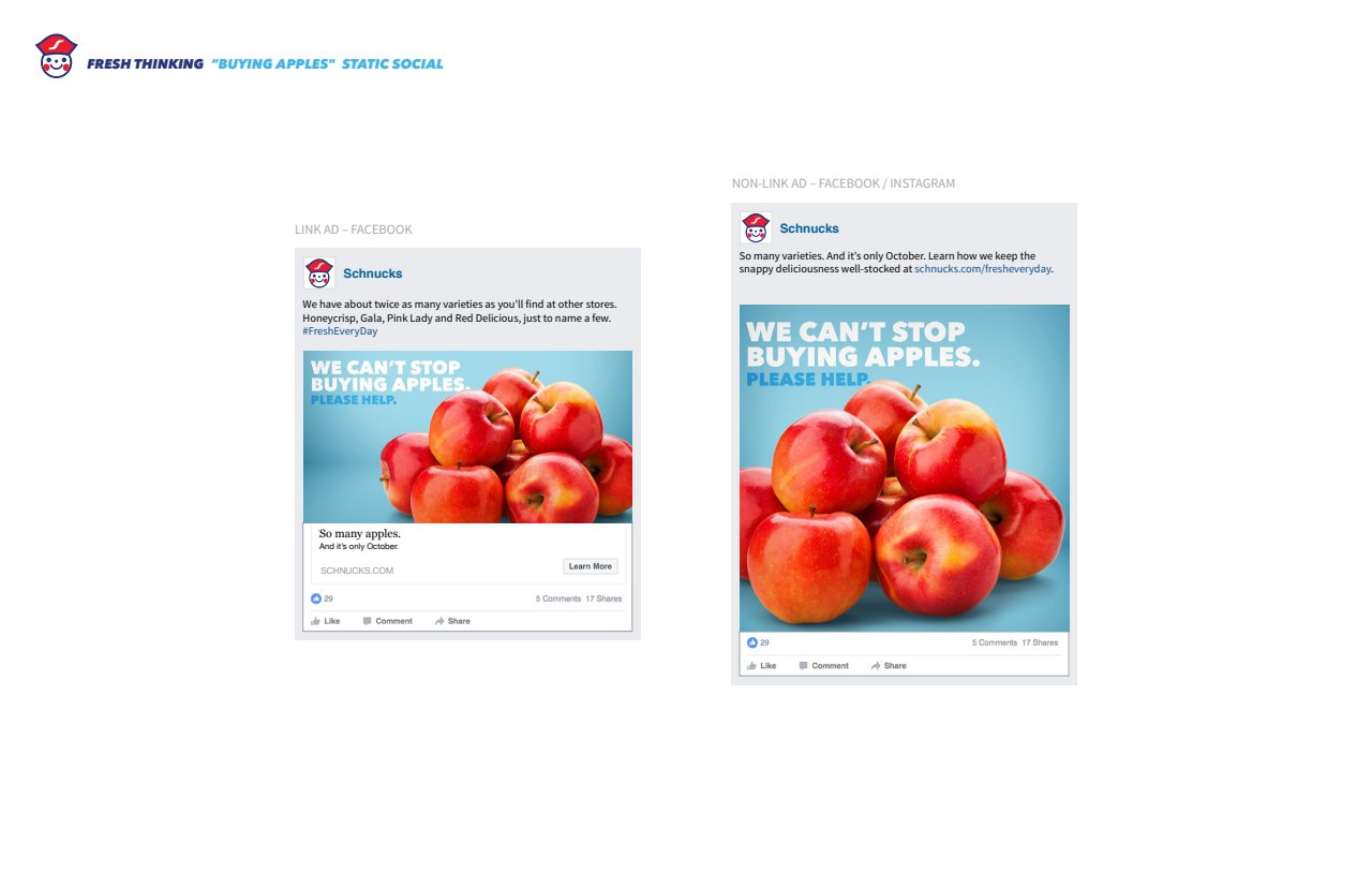 This fresh new look for Schucks Grocery Stores rolled out in October of 2017. Another team sold the idea and handled the TV edit. I jumped into display, social and wrapping up the landing page, along with image retouching and finishing of Facebook images.