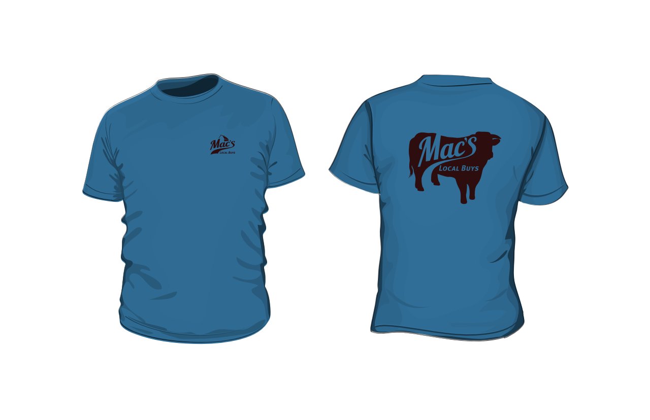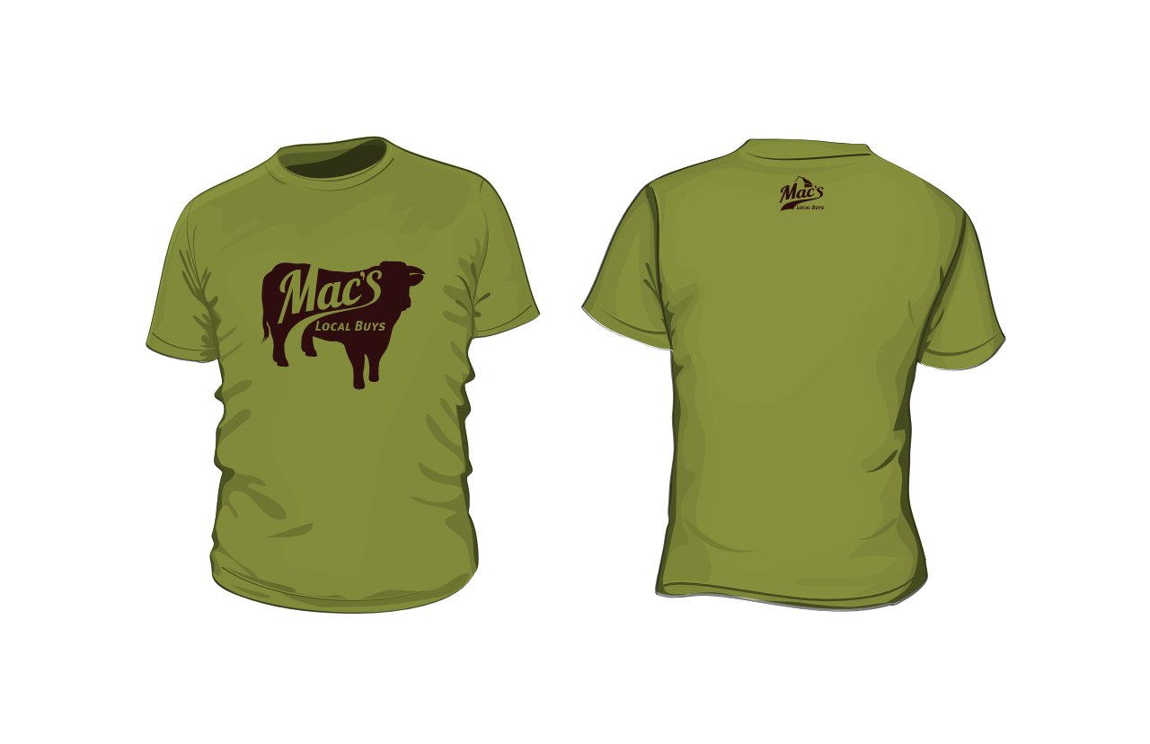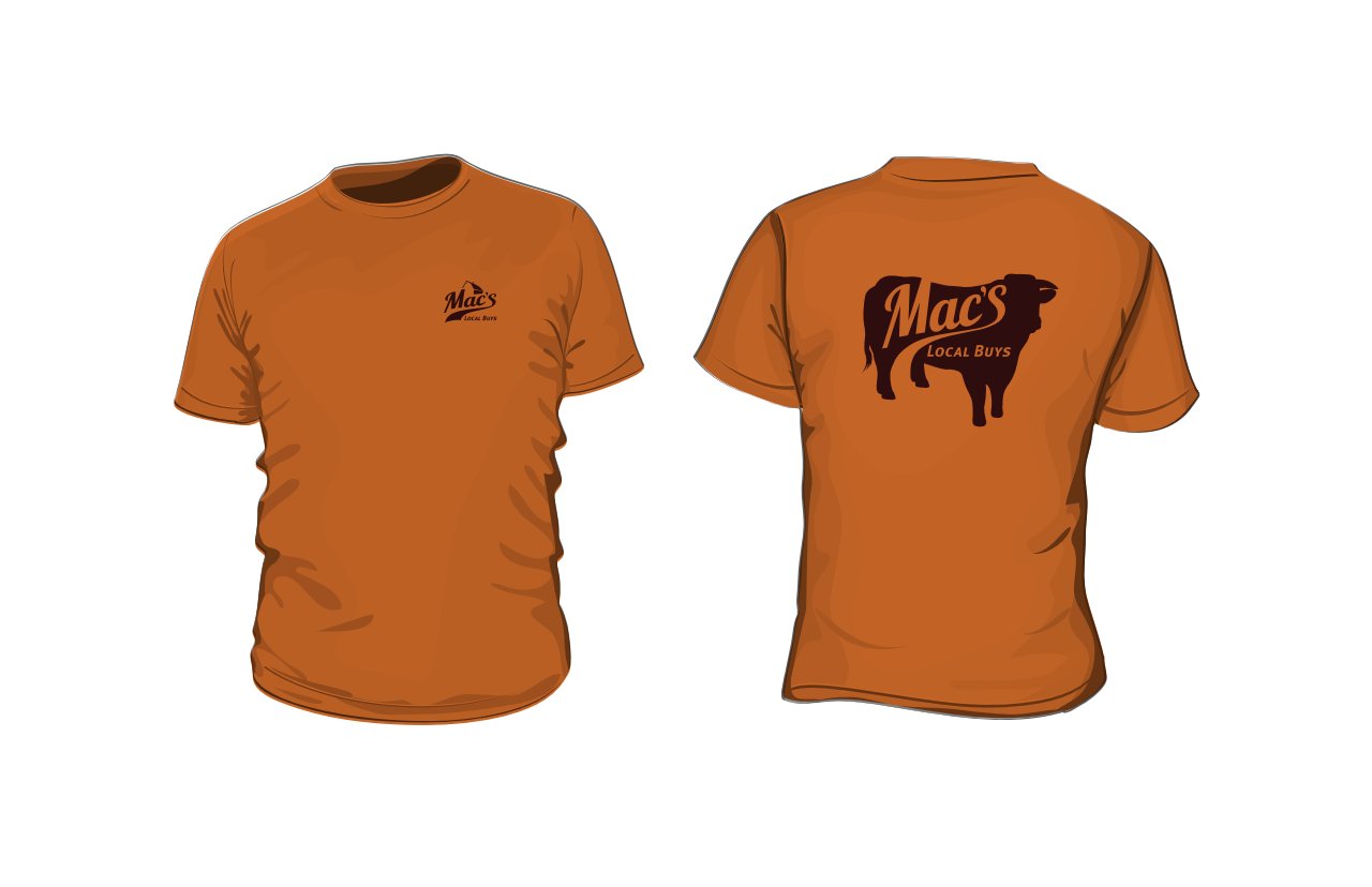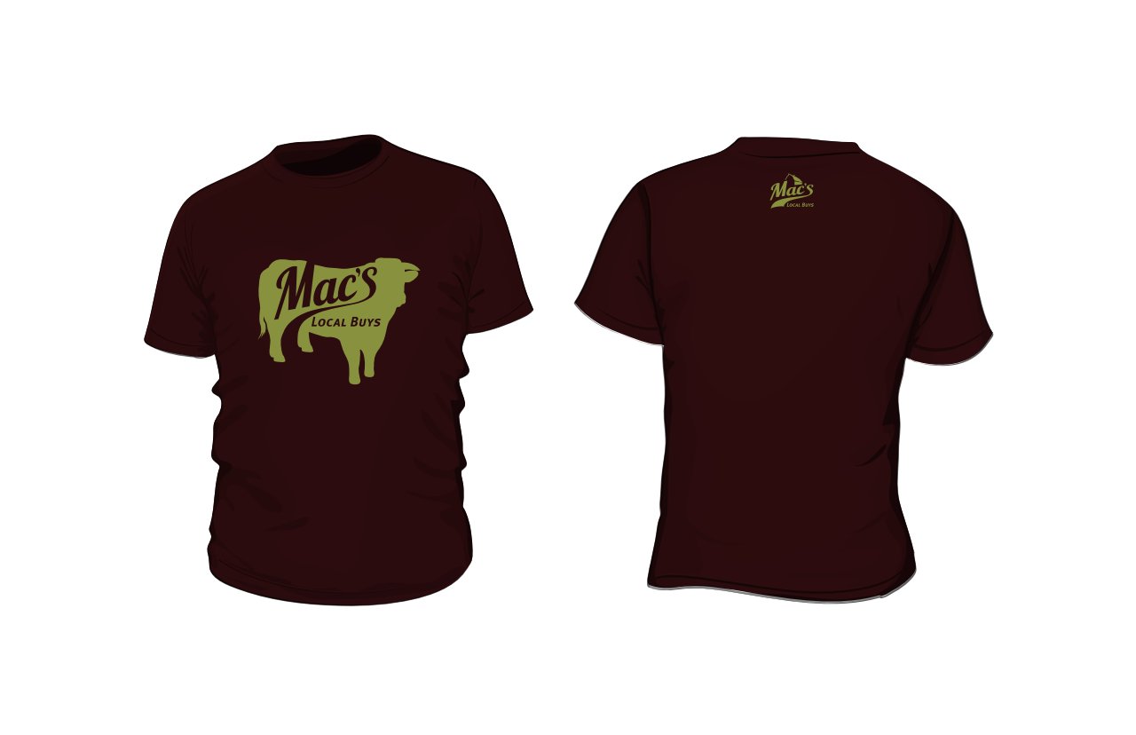 The simpler version of the logo works well for smaller applications, while the “Mac’s” cow t-shirts have become a familiar icon in local foodie circles and at Mac’s restaurant.