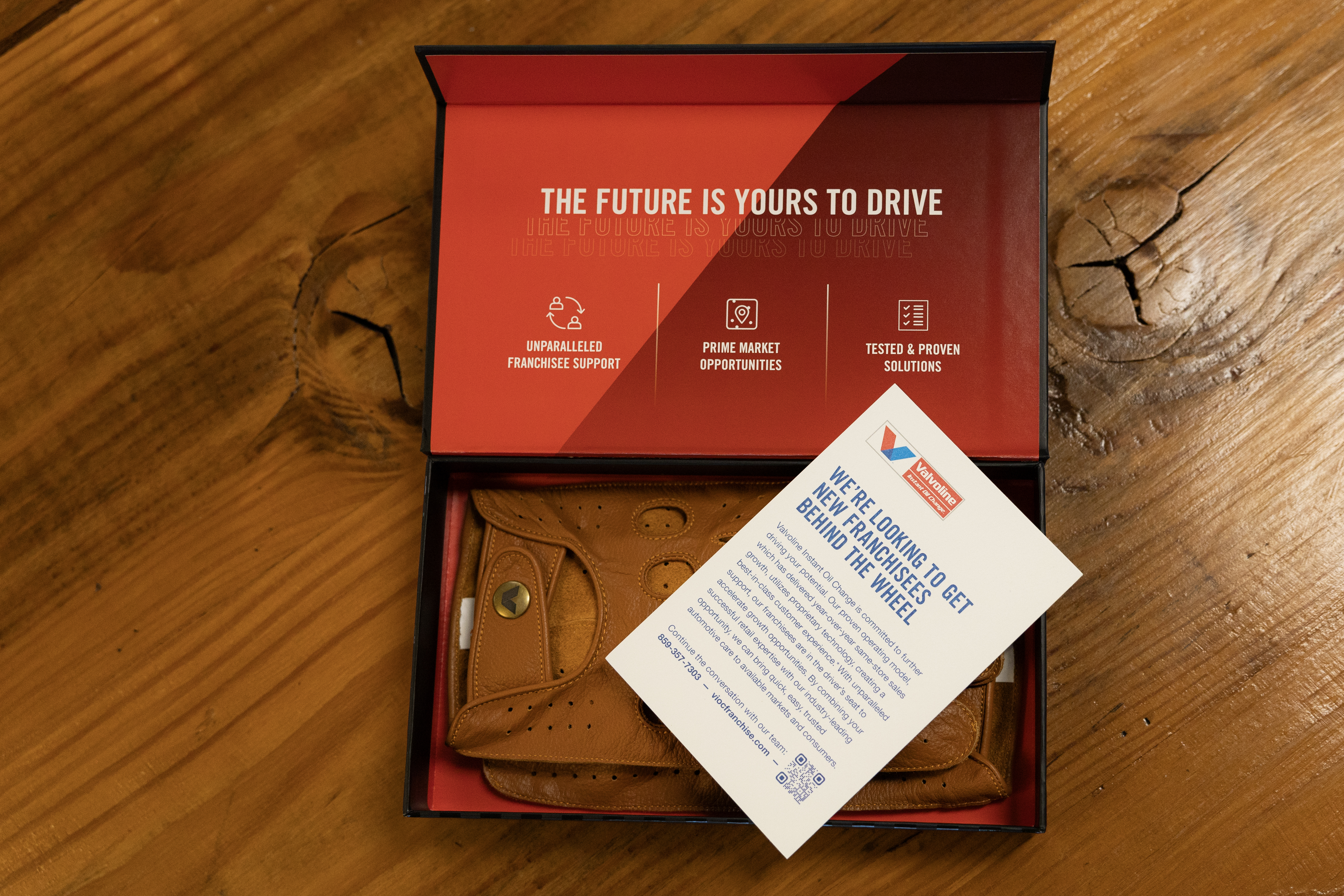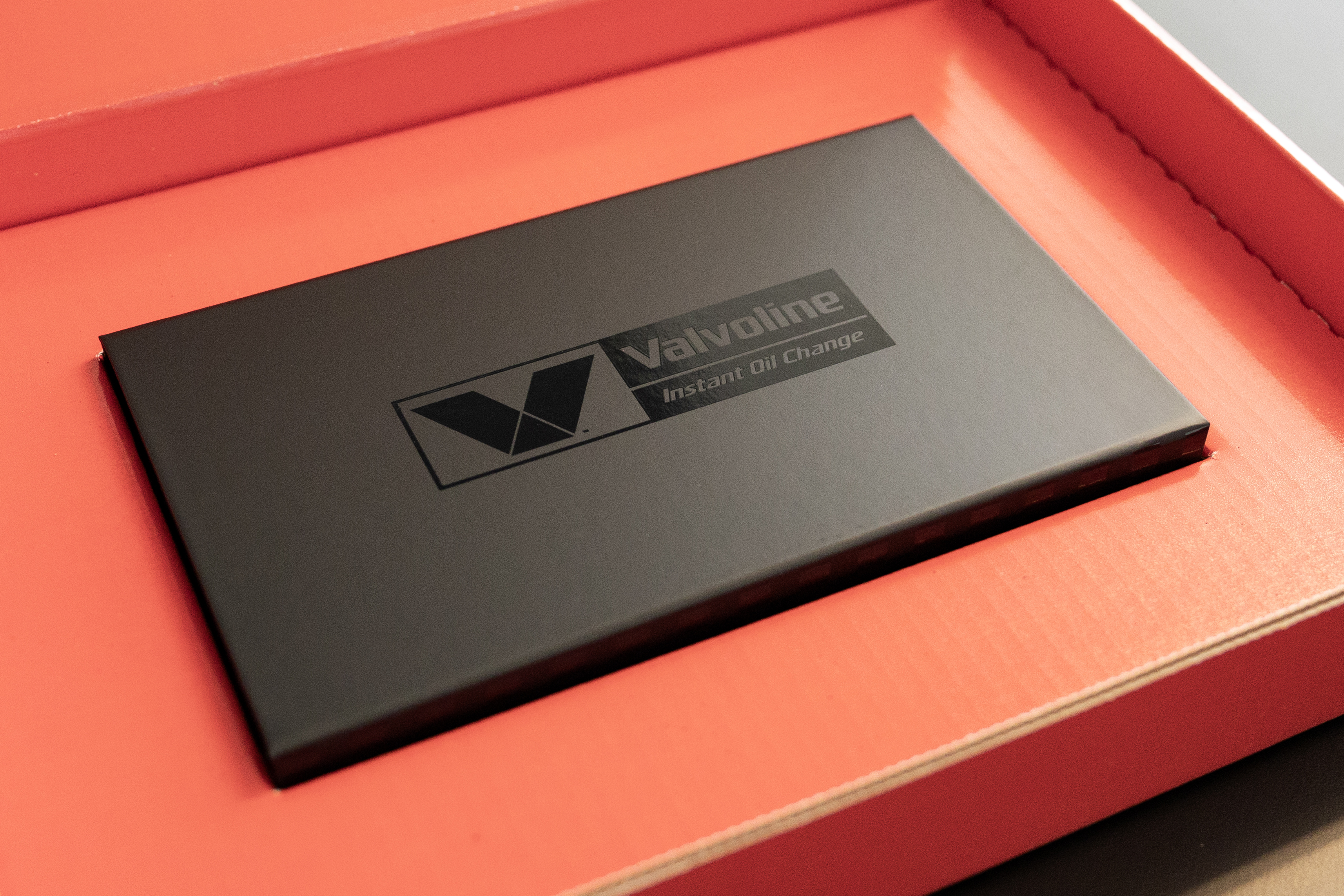As creative lead over the Valvoline Instant Oil Change account, I oversaw the production of this high-end mailer that targeted VIOC store franchise prospects. It was mailed in a custom-made VIOC Red outer that housed a magnetic box. The inner box was printed solid black using spot varnish over matte finishes to give it an upscale and less-branded feel. A checkerboard pattern was spot varnished around the outer edge to hint to the driving theme.