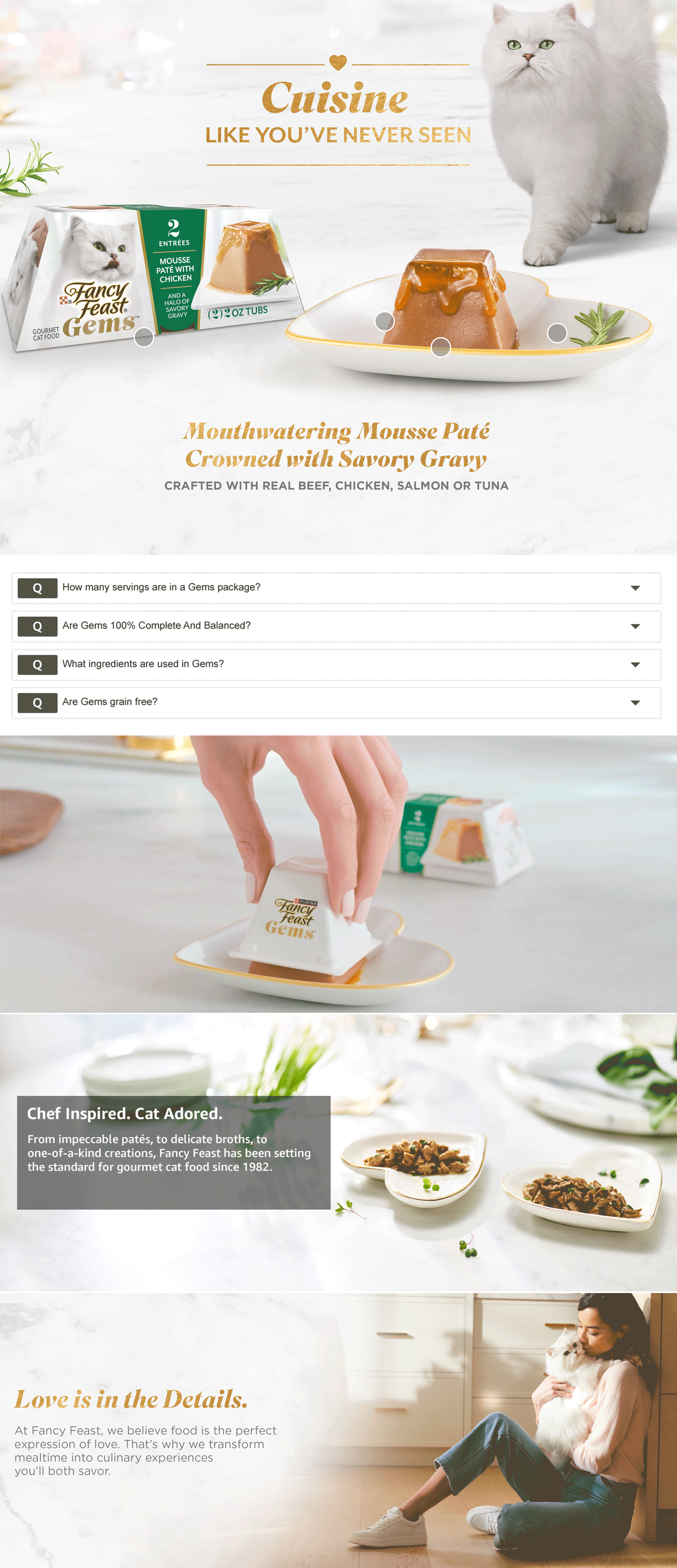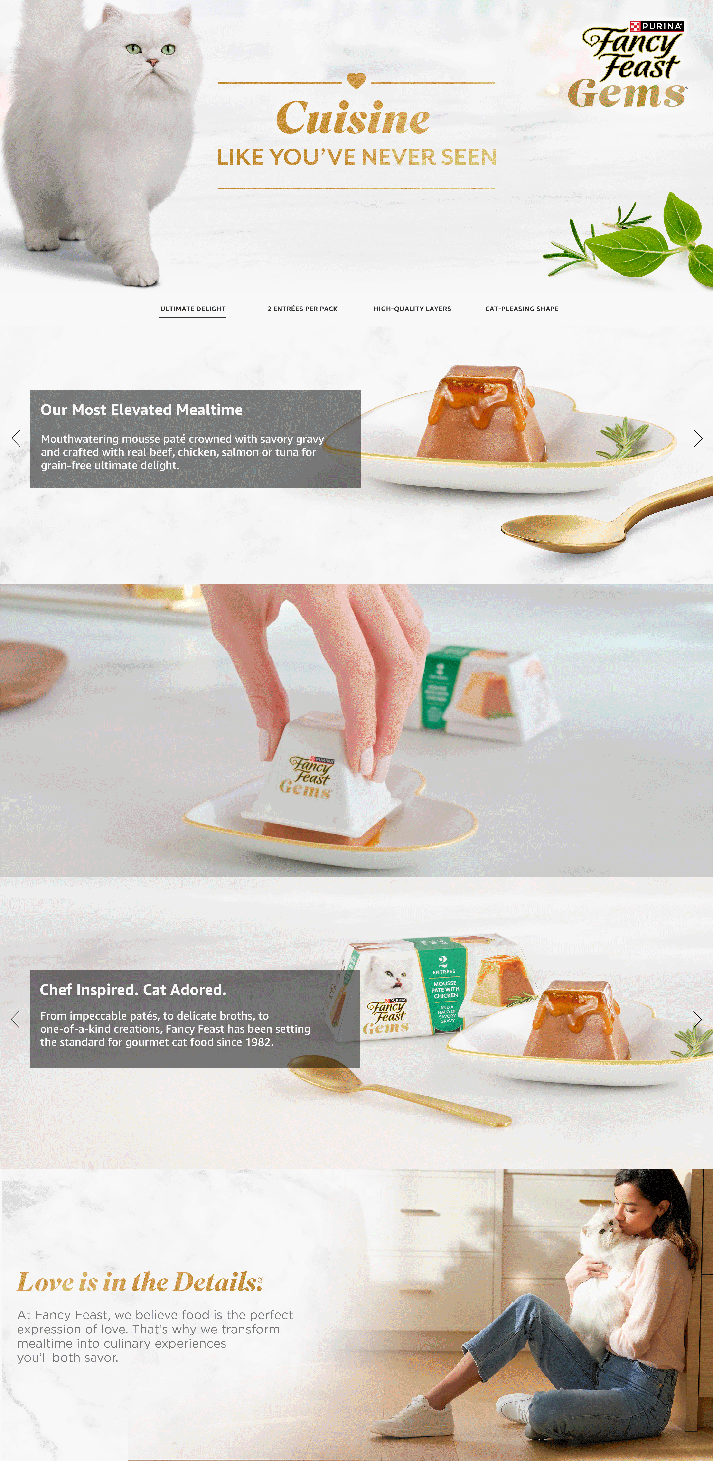 I updated the Fancy Feast Gems Amazon A++ Store Page. I turned an extremely modular page template into a much more expansive feeling site, where cell boundaries aren’t always clear. This update is scheduled to go live soon, as of Mid-July 2025.
