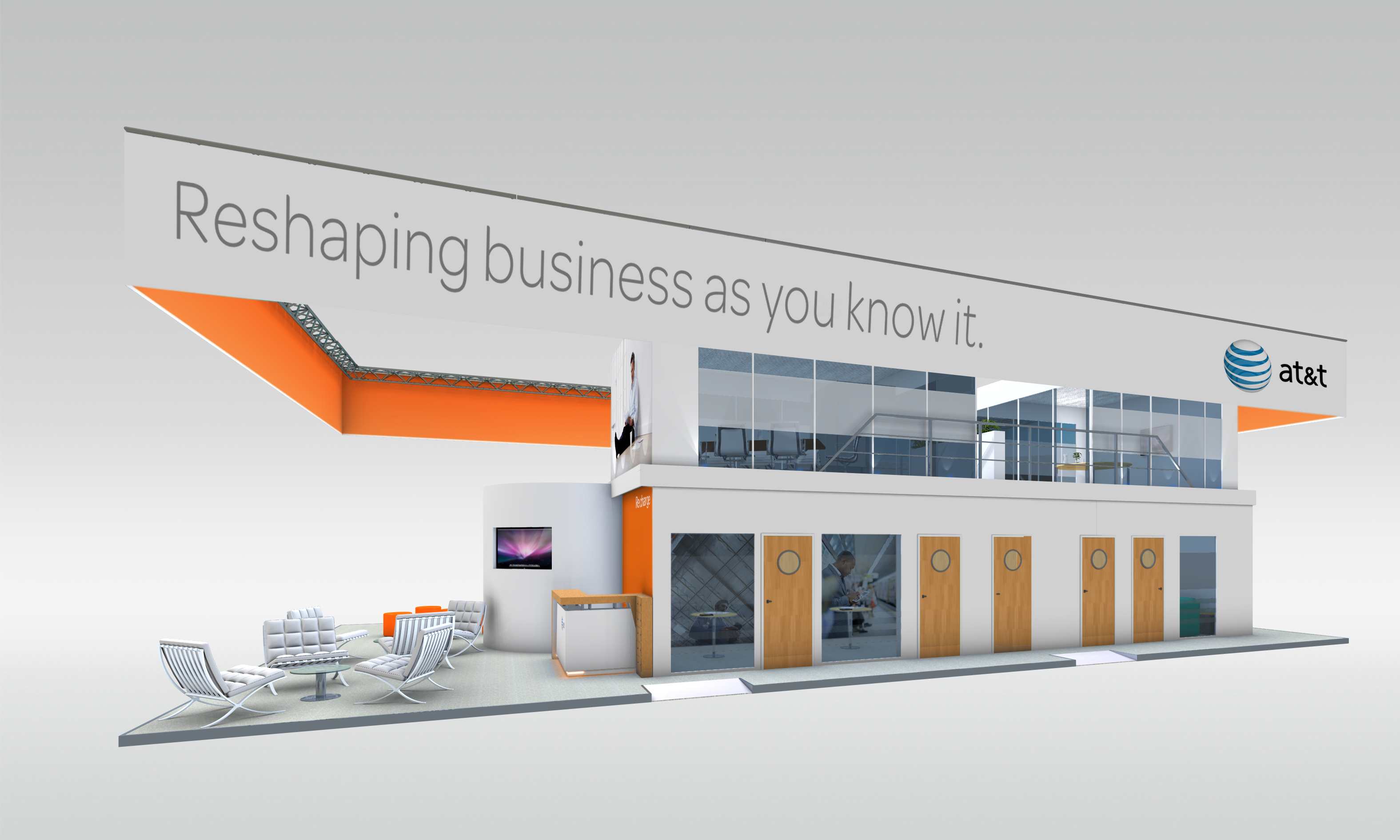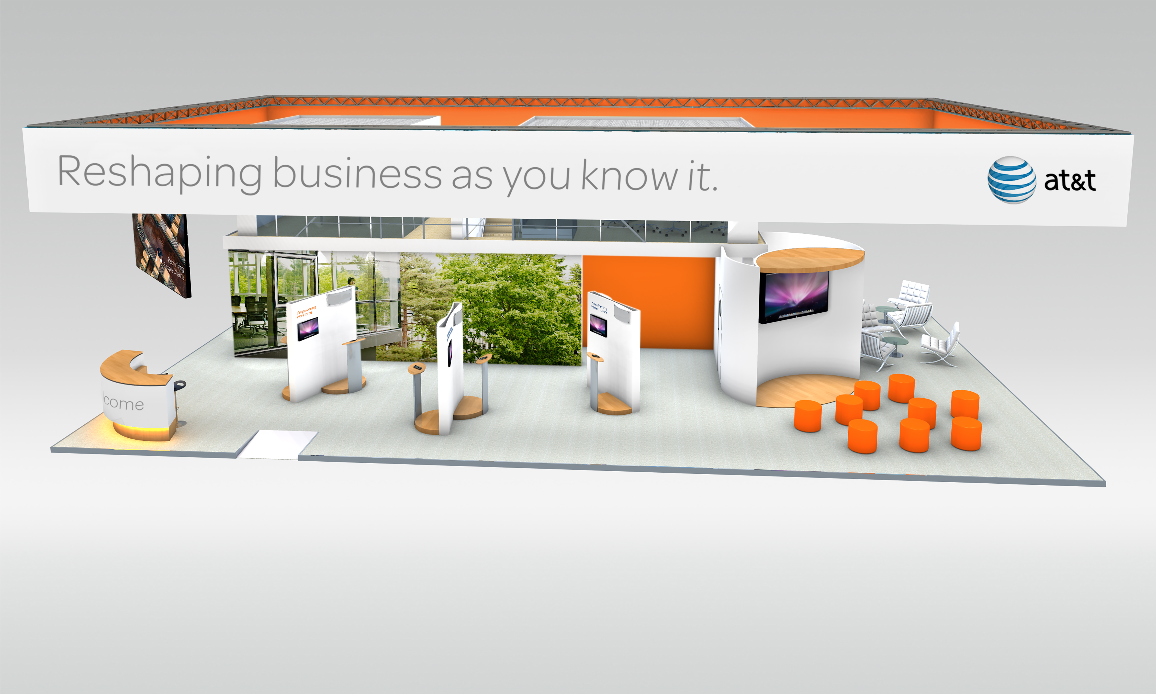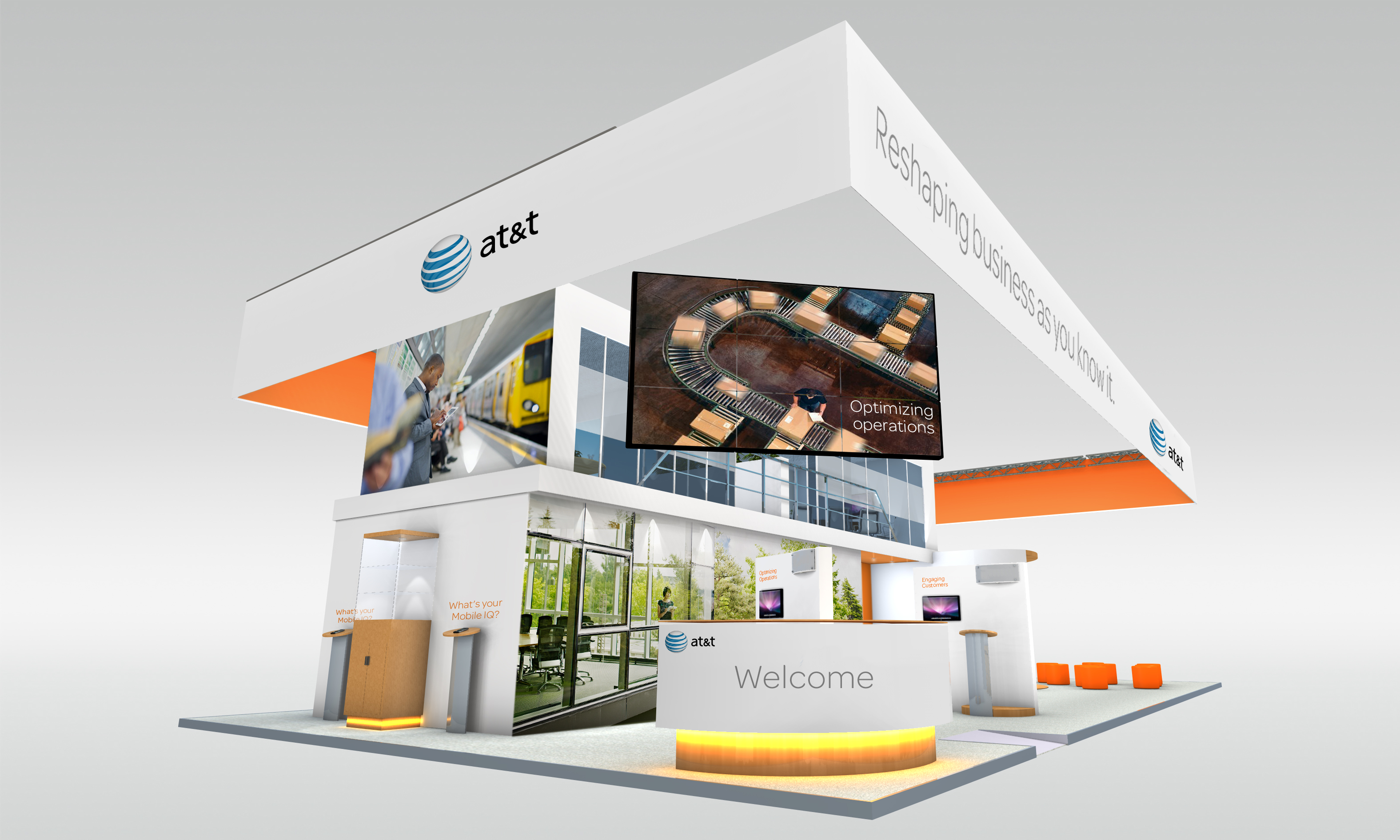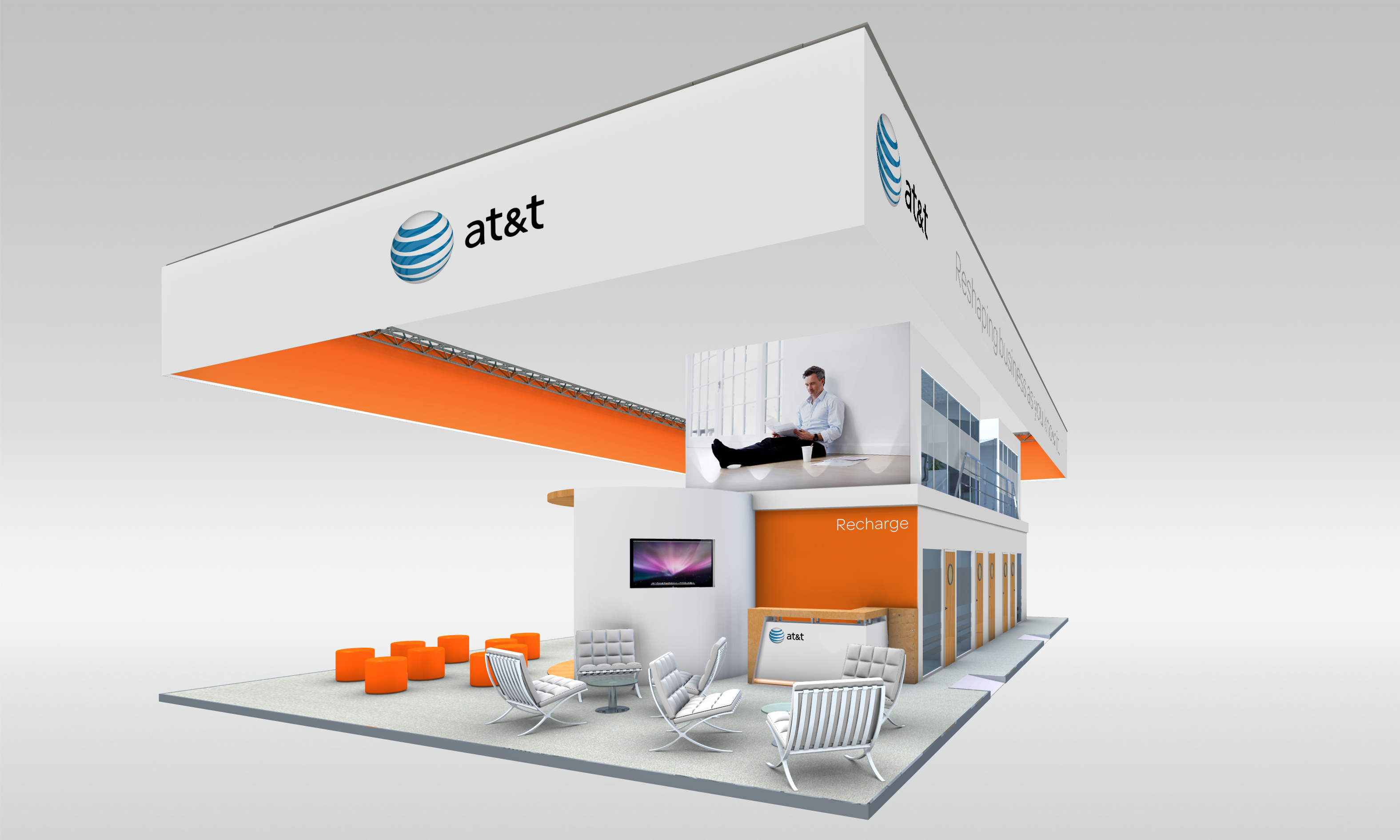 I designed the graphics for the AT&T booth at the Mobile World Congress in Barcelona. This included all wall facings, working with the booth makers for color, materials and texture treatments. We also created all the messaging, including videos for the main monitor and three subject-specific areas.